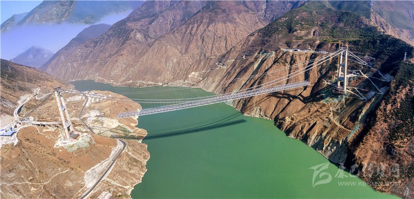正在架設(shè)鋼絎梁的雅康高速興康特大橋。張兵 余秋林 攝