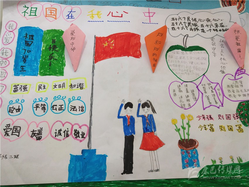 活動(dòng)在該校三至六年級(jí)學(xué)生中開(kāi)展,老師為學(xué)生提供創(chuàng)作所需材料,讓學(xué)生自由想象發(fā)揮,把自己心中對(duì)祖國(guó)的熱愛(ài)躍然紙上。各班精心組織,不到兩個(gè)小時(shí)的時(shí)間,一幅幅主題鮮明、內(nèi)容豐富、色彩明快的手抄報(bào)誕生了,孩子們的作品充滿了對(duì)祖國(guó)深深的愛(ài)與衷心的祝福。何俊鑫 文/圖