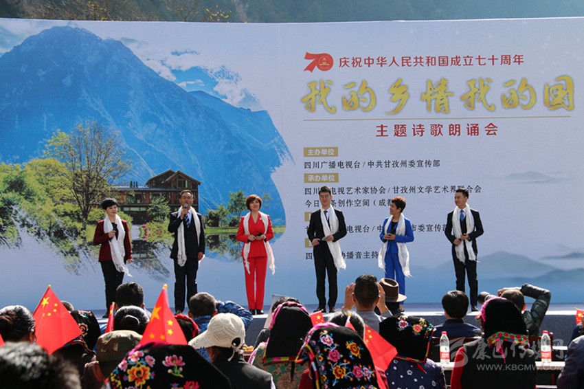本網(wǎng)訊 10月16日,由省廣播電視臺、州委宣傳部聯(lián)合主辦的“我的鄉(xiāng)情我的國”主題詩歌朗誦會在康定市孔玉鄉(xiāng)色龍村圓滿落幕。20多名省內知名主持人和朗誦藝術家齊聚色龍村,以天為幕、地為臺,通過朗誦、演唱、情景表演等藝術形式歌頌美麗富饒的甘孜,展示甘孜新時代鄉(xiāng)村振興的美好畫卷,講述新中國成立以來發(fā)生在蜀鄉(xiāng)大地上的故事,獻禮中華人民共和國成立70周年。