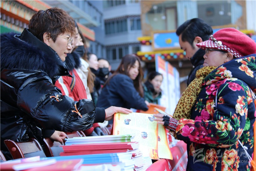 活動(dòng)現(xiàn)場(chǎng),工作人員為市民發(fā)放民族團(tuán)結(jié)進(jìn)步宣傳品、民族團(tuán)結(jié)進(jìn)步藏漢雙語宣傳教育讀本、宣傳畫、宣傳折頁(yè)、宣傳掛歷、《中國(guó)民族報(bào)》甘孜州民族團(tuán)結(jié)專刊、《民族》雜志甘孜州民族團(tuán)結(jié)??雀黝愋麄髻Y料9800余份(本),擺放展板30個(gè)。來自丹巴縣的仁真說:”現(xiàn)在的幸福生活離不開偉大的中國(guó)共產(chǎn)黨的領(lǐng)導(dǎo),也離不開全國(guó)各族人民共同團(tuán)結(jié)奮斗、共同繁榮發(fā)展?!?/p>