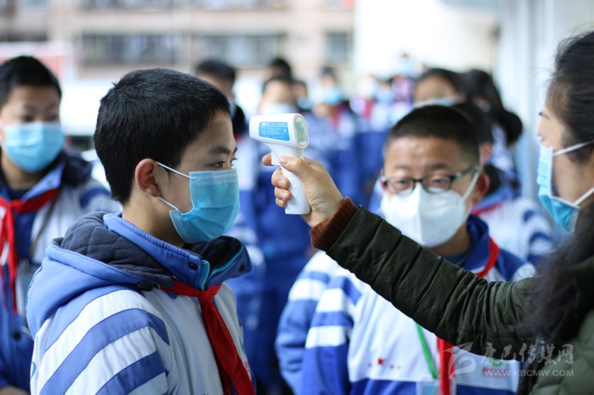 在九龍縣高級中學(xué),副校長帶著輪值教師早早站在各自崗位上,負(fù)責(zé)體溫檢測的教師提前到崗,逐個(gè)對學(xué)生進(jìn)行體溫檢測,并引導(dǎo)學(xué)生進(jìn)入班級,如在體溫檢測中發(fā)現(xiàn)學(xué)生體溫達(dá)到及超過37.3℃,有咳嗽、胸悶等現(xiàn)象,立即進(jìn)行復(fù)測,體溫仍然超過37.3℃的要將其引導(dǎo)至“應(yīng)急隔離緩沖區(qū)域”,并與學(xué)生的班主任聯(lián)系,及時(shí)告知家長,提示家長到學(xué)校門口接學(xué)生,同時(shí)對該名學(xué)生做好手、鞋的消毒工作。家長到校時(shí)嚴(yán)禁家長進(jìn)入學(xué)校,由值班領(lǐng)導(dǎo)帶領(lǐng)學(xué)生(保持一米間隔)送交家長,做好學(xué)生離校記錄,校醫(yī)也要做好個(gè)人防護(hù),預(yù)防飛沫傳播和接觸傳播,相關(guān)廢物進(jìn)行有效消毒處理等。