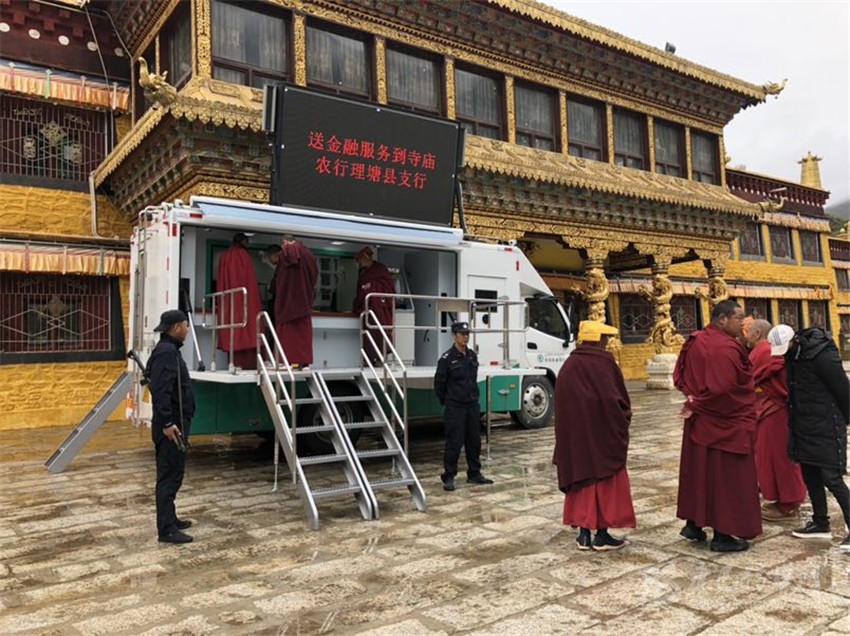 深入寺廟,服務(wù)僧侶“顯真情”。5月23日,理塘縣支行又將流動(dòng)汽車(chē)銀行開(kāi)往距縣城近100公里的下壩片區(qū),該片區(qū)下轄4個(gè)鄉(xiāng)鎮(zhèn)、16個(gè)行政村、1座寺廟,先后深入鄉(xiāng)鎮(zhèn)、寺廟開(kāi)展流動(dòng)金融服務(wù),累計(jì)辦理存取款業(yè)務(wù)12筆、金額25500元,殘損幣兌換200元,辦理開(kāi)卡3戶(hù)、手機(jī)銀行2戶(hù)、手機(jī)短信5筆、密碼解鎖2筆、查詢(xún)3筆、明細(xì)打印2筆、手機(jī)安全認(rèn)證碼修改3筆。