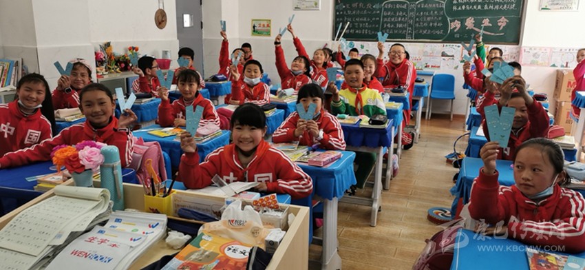 康定市民族小學(xué)的孩子們展示收到的“綠書(shū)簽”。