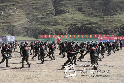 在實(shí)戰(zhàn)技能演練中,各單位都表演了自己的拿手絕技:由武警甘孜州支隊(duì)雪山飛虎隊(duì)20名官兵演練的特種射擊;武警四川總隊(duì)第二支隊(duì)演練的格斗術(shù);中國人民解放軍甘孜軍分區(qū)獨(dú)立營120名官兵演練刺殺操;武警甘孜支隊(duì)一大隊(duì)和三大隊(duì)200名官兵演練的防暴對抗;雪山飛虎隊(duì)隊(duì)員帶來的硬功表演;州公安局特警支隊(duì)特警演練的“雪狼十七式”、摔擒配套動(dòng)作、實(shí)戰(zhàn)對抗。據(jù)了解,“雪狼十七式”是甘孜公安特警通過六年來在高原維穩(wěn)駐訓(xùn)、處置突發(fā)事件,摸索出來的摔擒動(dòng)作,具有極強(qiáng)的殺傷力,能瞬間制敵。它是我州特警隊(duì)員實(shí)戰(zhàn)中克敵制勝的法寶,是特警隊(duì)員必備的基本功。