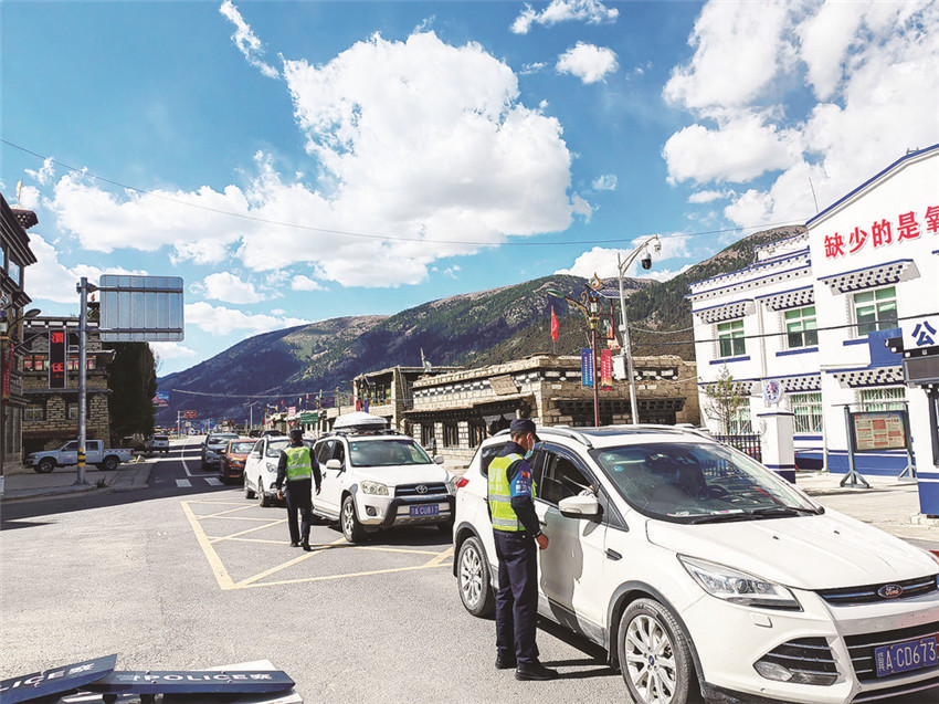 在巴塘縣公安局竹巴龍派出所,21名民輔警負(fù)責(zé)從西藏返川人員的查緝和疫情防控。每天對(duì)300多輛車(chē)和600余名旅客進(jìn)行測(cè)溫、查健康碼、行程卡,協(xié)助開(kāi)展核酸檢測(cè)等,他們不敢有半點(diǎn)馬虎。所長(zhǎng)居勉表示,嚴(yán)格按照州、縣防控要求,大家對(duì)所有車(chē)輛進(jìn)行編號(hào)排隊(duì),實(shí)行首尾車(chē)制統(tǒng)一護(hù)送至縣城集中隔離點(diǎn)?!耙咔殛P(guān)鍵時(shí)刻絕對(duì)不能掉鏈子,干工作必須要認(rèn)真負(fù)責(zé)?!本用阊a(bǔ)充說(shuō)。