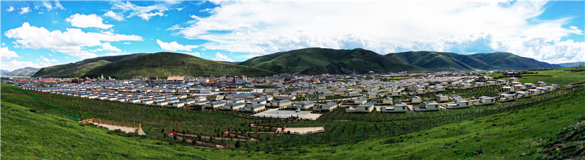色達(dá)縣全境海拔大都在4000米以上,長(zhǎng)冬無夏,年平均溫度-5℃,大氣含氧量不及低海拔地區(qū)的60%。為改善貧困群眾的生活條件,2017年,色達(dá)縣啟動(dòng)了易地扶貧搬遷集中安置,對(duì)口幫扶的溫江區(qū)投入資金4775萬元,又專門追加320萬元用于社區(qū)及周邊環(huán)境綠化。