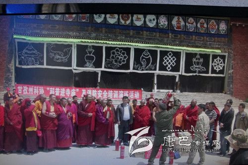 工作組根據拿呷寺及僧侶們的需求,組織開展了“科普進寺廟”及消防安全培訓演練活動,邀請該縣消防官兵現場對僧侶進行了培訓演練,讓他們熟練掌握運用滅火器材,提升面對突發(fā)事件時的應急處置能力。工作組向寺廟贈送了1萬元的消防器材,發(fā)放藏漢雙語科普圖書《安全消防》、《甘孜藏族自治州藏傳佛教事務條例實施細則(試行)》圖書260冊,《科普一百問》、《防震減災小冊頁》400余份。