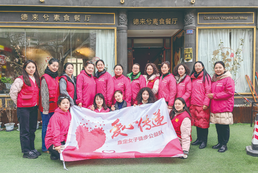 自2019年起,團(tuán)隊(duì)還堅(jiān)持每年舉行“致敬環(huán)衛(wèi)工”免費(fèi)自助餐活動(dòng);3年新冠疫情期間及“9·5”瀘定地震發(fā)生后,團(tuán)隊(duì)更是積極響應(yīng)黨委政府亟需志愿者的號(hào)召,一抹抹“巾幗紅”賡即沖在一線(xiàn),購(gòu)置災(zāi)區(qū)所需用品、悉心照顧受災(zāi)病患,發(fā)揮了公益團(tuán)隊(duì)?wèi)?yīng)有職能,康定女子徒步公益隊(duì)的名字,愈來(lái)愈為人所知、為人稱(chēng)贊。