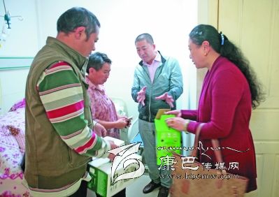 雖然大家都在獻愛心,但這點錢也顯得杯水車薪。結對認親小分隊回到報社后,立即向報社黨委作了匯報,第二天中午,報社派出人員代表黨委、編委會、結對支部和全體職工,到州人民醫(yī)院探望蘇國全,這才出現了本文開頭的一幕。在病房照顧蘇國全的妻子和女兒看見“親戚”單位來了人,眼里閃動著激動的淚光。“這幾天借來的錢都要用光了,如果停藥就會有危險。”蘇國全的妻子饒大姐說。報社領導安慰她說,“不要急,我們大家一起想辦法。”并將全社職工捐贈的10000元現金交到她的手中。當她從報社領導手中接過愛心款時,母女倆的淚水奪眶而出,連聲感謝。