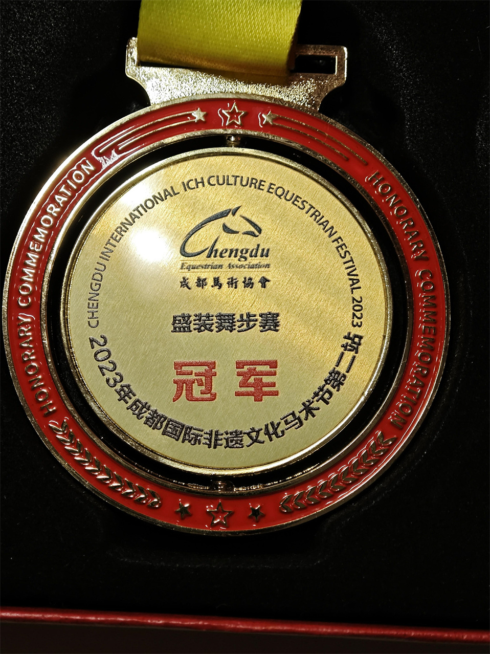2023年6月,獲2023成都國(guó)際非遺文化馬術(shù)節(jié)(第二站)盛裝舞步賽初三組冠軍。