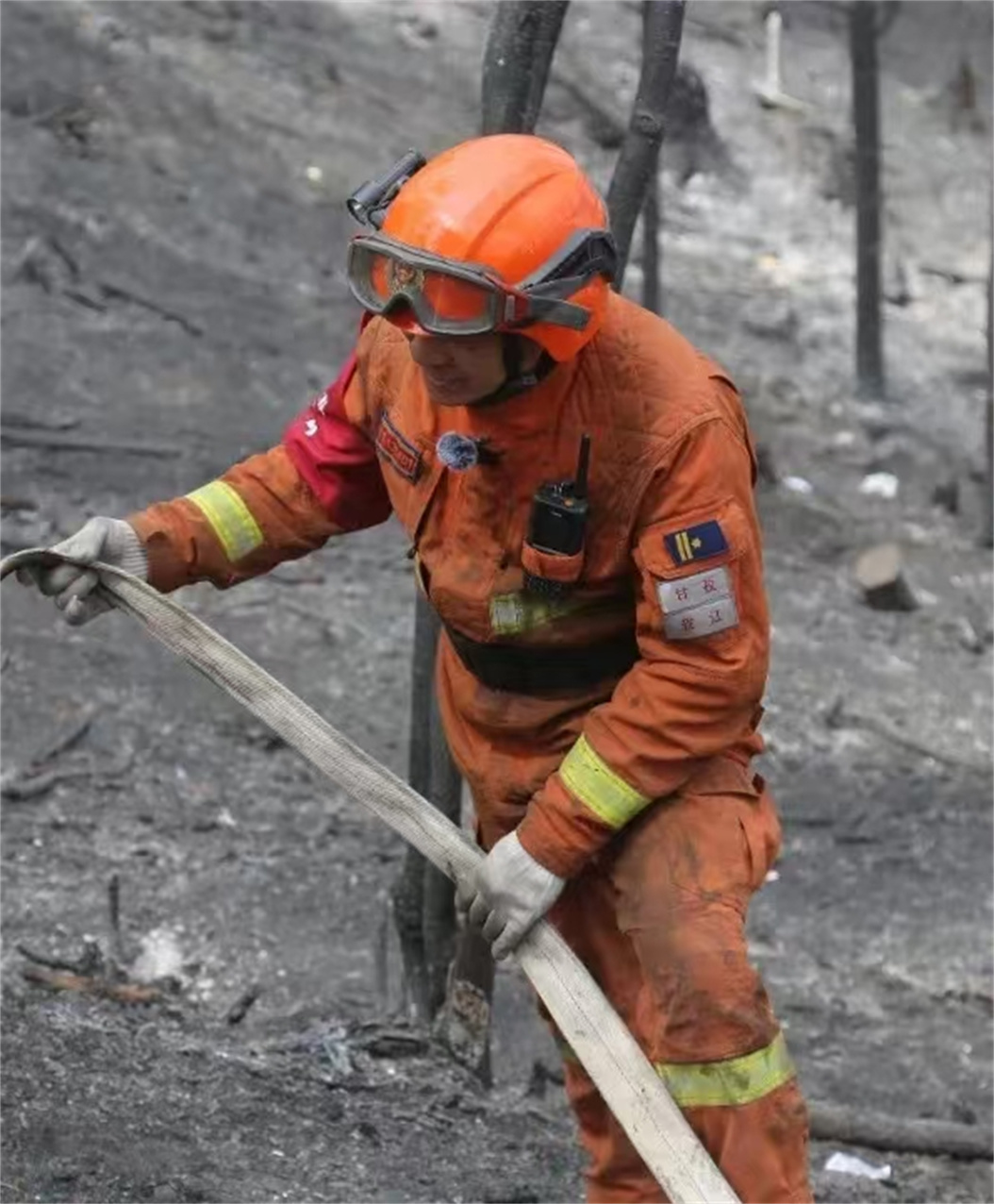 張國(guó)勝帶領(lǐng)隊(duì)友滅山火。