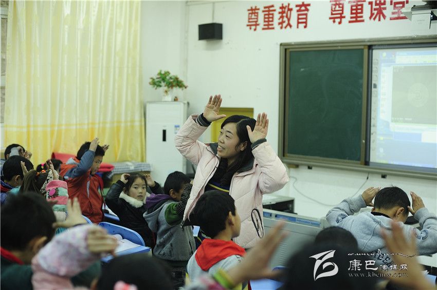 “同學(xué)們,我們?cè)賮?lái)練習(xí)一下好嗎?”孩子們齊刷刷地隨著音樂(lè)又唱又跳,《鵝》、《春眠》、《小雨沙沙地下》三首歌曲之后孩子們興致高漲、喜笑顏開,裴老師一個(gè)暫停手勢(shì),教室立刻安靜下來(lái),緊接著就是密集的移動(dòng)桌椅的聲音,30多張書桌很快又被排放得整整齊齊,整個(gè)過(guò)程老師沒(méi)說(shuō)一句話,這群六七歲的孩子卻仿佛久經(jīng)訓(xùn)練的士兵反應(yīng)迅速而有序。