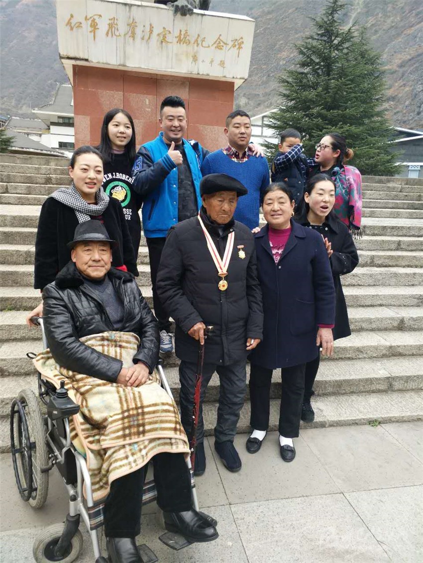 王瑞生專門帶領28名兒孫們前往瀘定橋紀念碑前合影,向他們講述紅軍長征這段歷史。他說得最多的一句話就是,“只有共產(chǎn)黨才能給我們帶來幸福生活,要不忘黨恩,回報社會?!崩先颂厥獾募t軍情結感染著兒孫們,老人傳承著紅軍精神,不忘初心,永遠向前。“老人身上體現(xiàn)的不向困難低頭,堅強不屈的精神,正是當前開展精準扶貧工作所需要倡導的精神,只要我們發(fā)揚紅軍精神,就一定能夠過上好日子?!崩先说膶O子告訴記者,在老人的激勵下,現(xiàn)在家人昂揚向上,幸福美滿。