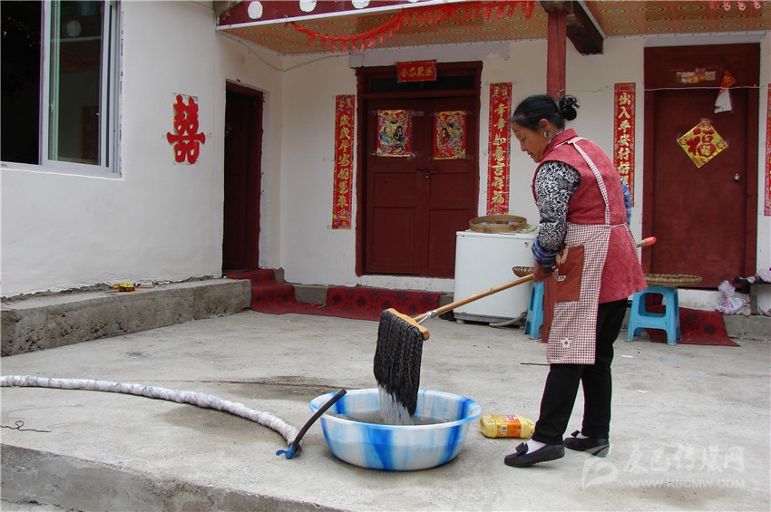 賀姚珍在打掃衛(wèi)生。