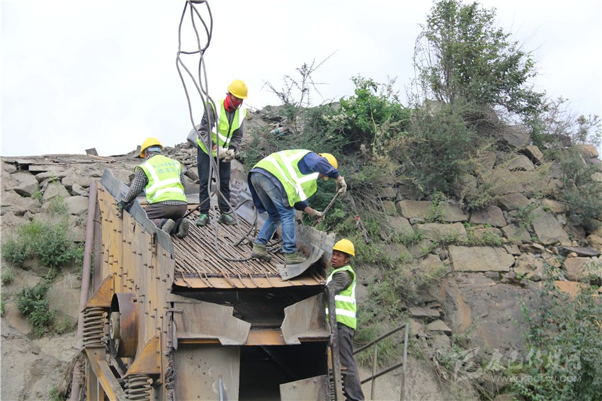8月25日,塔公村采砂場早已停止了一切生產(chǎn)。記者在現(xiàn)場看到,起重機正將砂場里10多米長,非常笨重的傳送帶拆放在地上。數(shù)十名村民和工人一起,用挖機、吊車、氣割機等設(shè)備將生產(chǎn)砂石的設(shè)備進(jìn)行拆解,拆除的生產(chǎn)設(shè)備、機械零件整齊地擱置一旁,砂場拆除工作正在安全有序進(jìn)行。望著曾經(jīng)給村民帶來巨大效益的設(shè)備被拆解在地上,塔公村村主任伍金多吉流下了傷心的淚水。