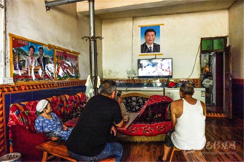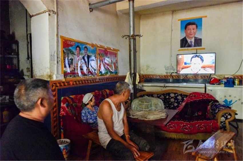 沒客人時(shí),朱國富陪81歲的父親和80歲的母親看電視。張可凡攝。