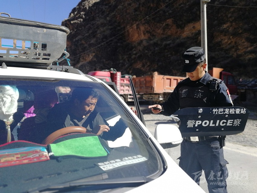 竹巴籠派出所(檢查站)民警對(duì)過(guò)往車(chē)輛例行檢查。