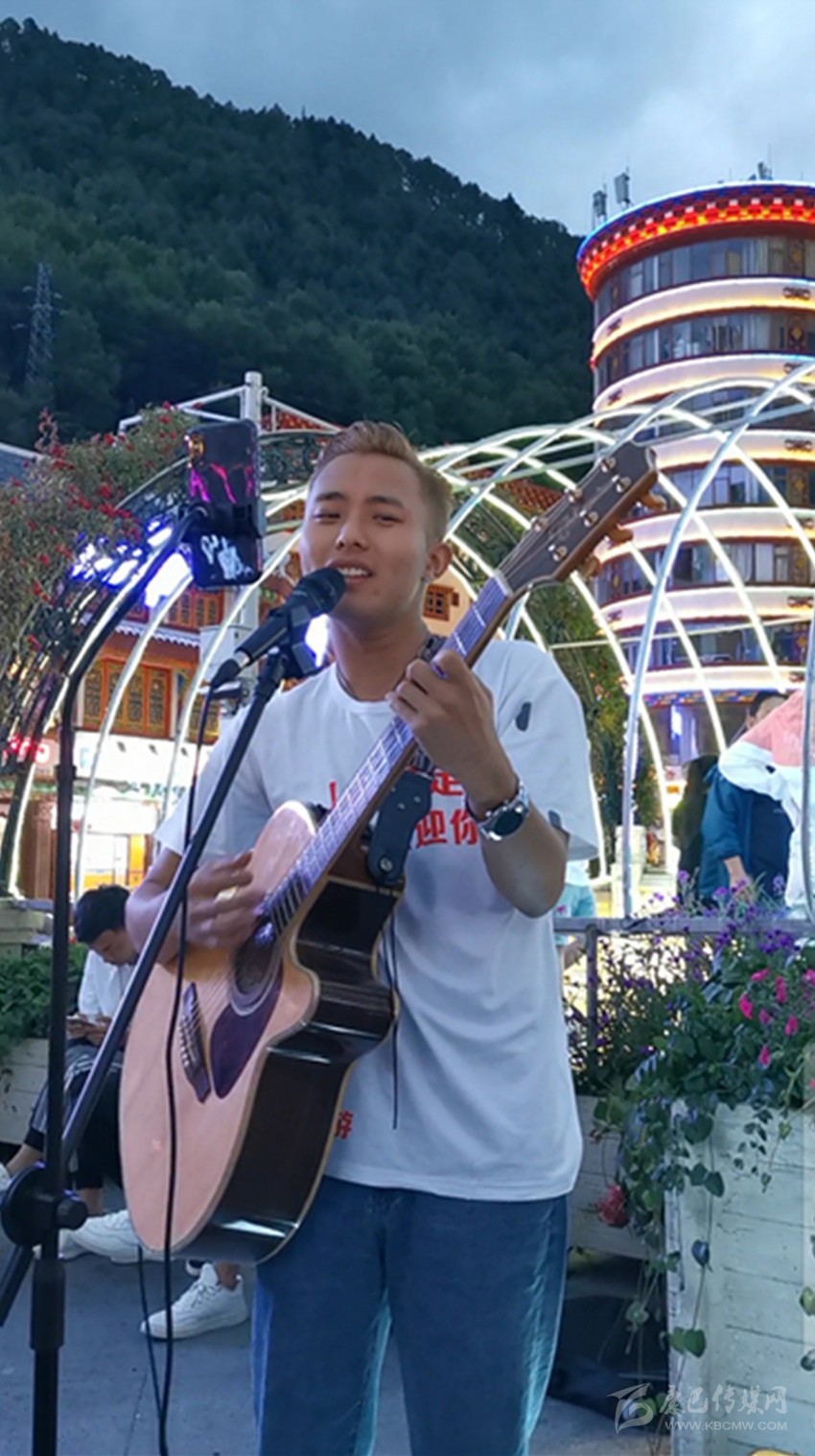 25歲的扎西 澤里是丹巴縣格宗鄉(xiāng) 人,從小喜歡音樂(lè)?!皬男?學(xué)到初中,一直都是音樂(lè)委員。從小 就夢(mèng)想當(dāng)一個(gè)音樂(lè)家,現(xiàn)在看來(lái)音樂(lè)家 是當(dāng)不了,就當(dāng)個(gè)音樂(lè)人吧?!痹鳚衫?撥動(dòng)吉他的琴弦,也撥動(dòng)自己的心弦。