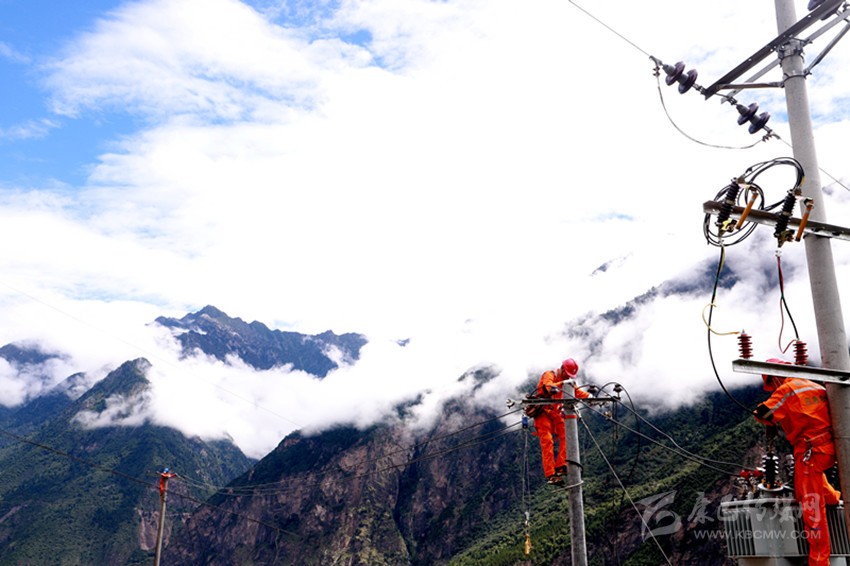 登桿作業(yè)、地面牽引、金具安裝……甘孜供電公司的工作人員和村民們緊密配合,一連串工作在雨中有序進行。經(jīng)過6個多小時的忙碌,工作人員將新裝變壓器最后一顆螺絲旋緊后下桿撤離,隨著開關合閘,線路開啟帶電測試,不遠處傳來了村民們的叫喊聲:“來電了!來電了!燈泡亮了!”