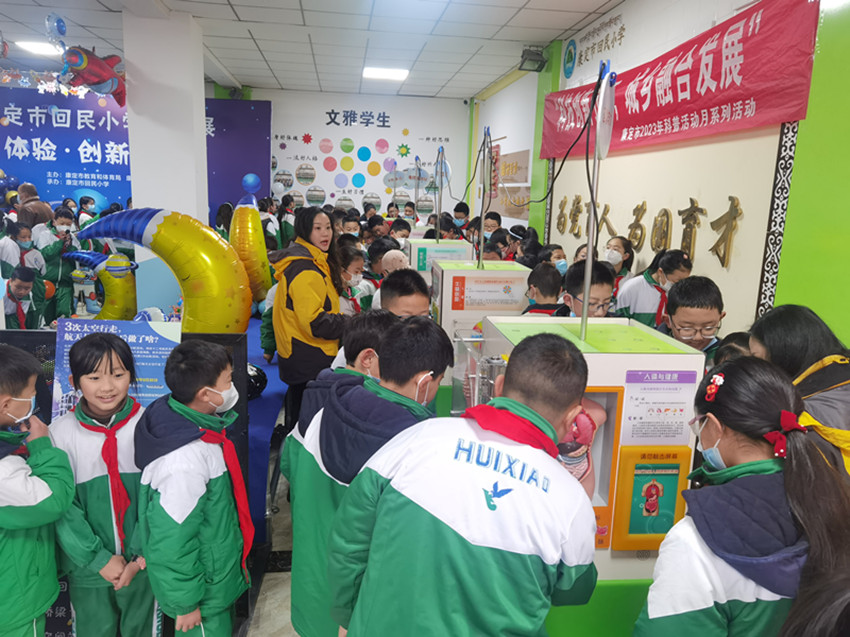 這是回民小學(xué)第三屆校園科技節(jié)活動(dòng)上的精彩一幕,每年的科技節(jié)都是該校全體師生翹首以盼的“重頭戲”。今年的科技節(jié)以“逐夢(mèng)九天,強(qiáng)國(guó)有我”為主題,由康定市教體局、康定市科協(xié)主辦,回民小學(xué)承辦,希望學(xué)生們能夠在科技實(shí)踐、體驗(yàn)和創(chuàng)新中把握未來(lái)。
