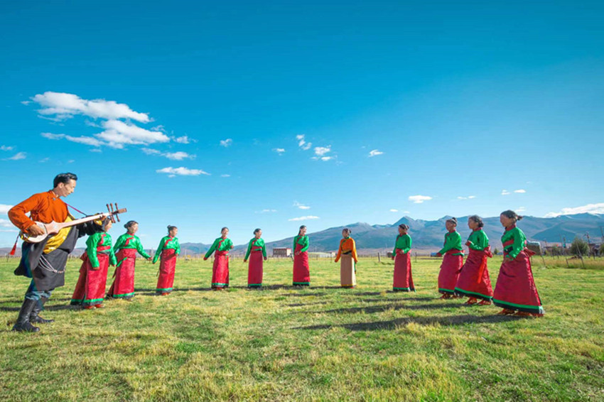 澤仁彭措是位“半路出家”的鄉(xiāng)村音樂教師。“小時候就對音樂特別感興趣,但那時候家里沒條件,很難有機會系統(tǒng)地學習音樂知識?!遍L大后,澤仁彭措成為一名教師。工作之余,他始終保持著對音樂的熱愛,自學了札木聶和弦子等樂器。