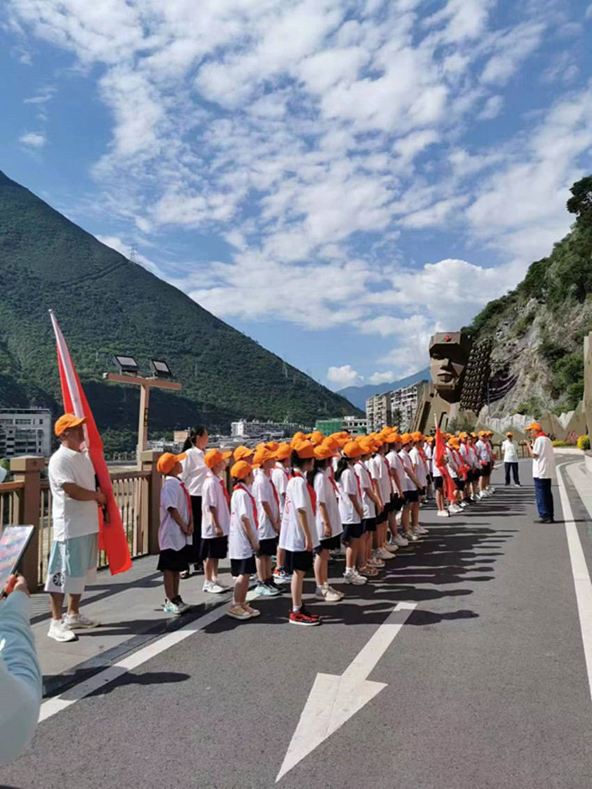 本網(wǎng)訊 今年是全面貫徹落實黨的二十大精神的開局之年,為認(rèn)真貫徹落實《關(guān)于進(jìn)一步做好新時代關(guān)心下一代工作的意見》精神,引導(dǎo)廣大青少年成為德智體美勞全面發(fā)展的社會主義建設(shè)者和接班人,7月17日,“老少共筑中國夢·民族團(tuán)結(jié)一家親”瀘定縣青少年夏令營活動在瀘定縣紀(jì)念碑公園舉行。圖為活動現(xiàn)場,瀘定關(guān)工委老同志與青少年一起“重走長征路”?!?strong> 瀘定縣關(guān)工委 攝影報道