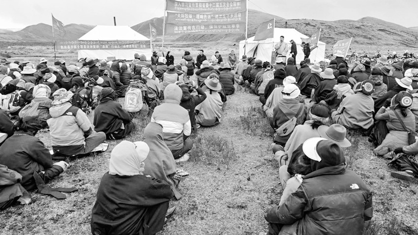 皚皚雪山相伴,莽莽森林環(huán)繞,措普湖猶如一面鏡子靜靜地躺在雪山下。湖邊草地上歡快的人們,或手拉手,跟著弦音學(xué)習(xí)巴塘舞蹈,或手捧一杯藏式奶茶,躺在沙發(fā)上,享受悠閑時(shí)光。
