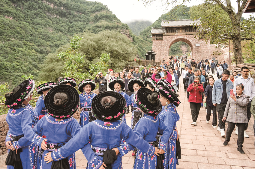 除了感受田園慢生活,嵐安古寨獨特的自然風(fēng)光也讓游客放慢了腳步?!半p節(jié)”假期,嵐安特色民宿依托優(yōu)美的自然環(huán)境和貴瓊文化,吸引了不少游客入住,游客可以住在藏寨里,品嘗特色美食、跳嵐安鍋莊、體驗推豆腐等特色民俗活動。