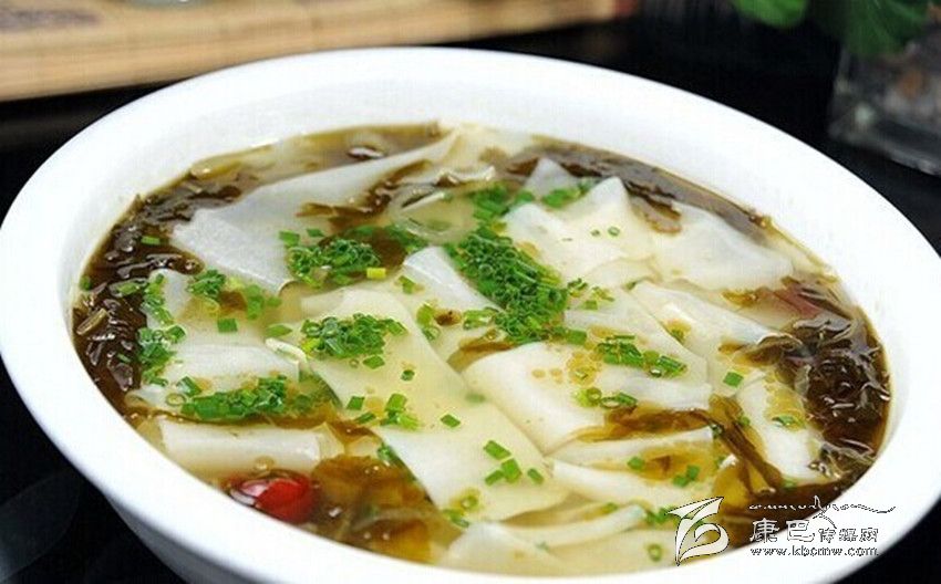 酸菜面塊這是一種特色很濃的藏族傳統(tǒng)晚餐。其主要原料是酸菜,酸菜的制作方法很簡單:把菜葉煮到快熟時(shí),取出冷卻,然后裝入壇子或木桶里,密封好放在陰涼處,一星期左右就成了。