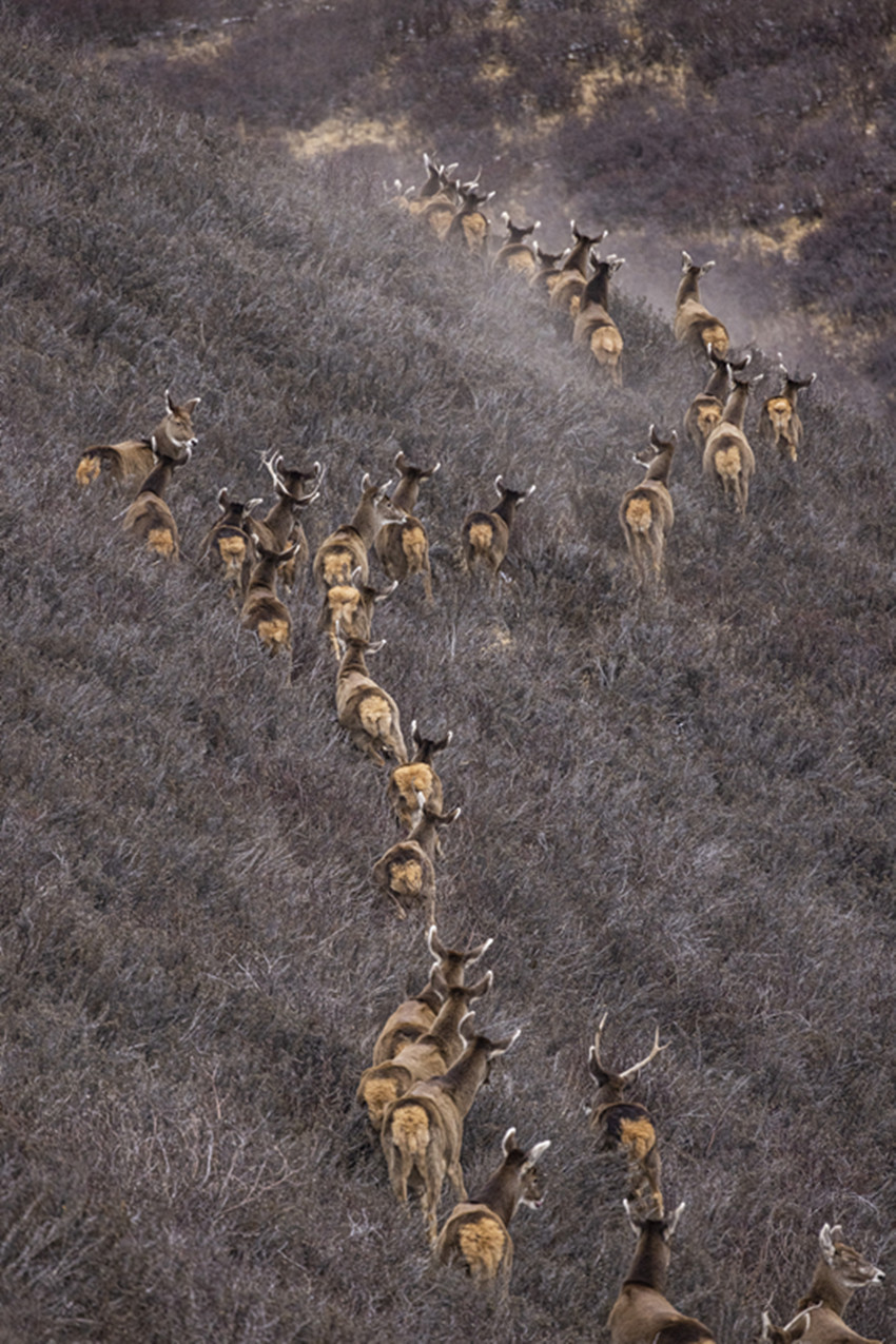 上百只白唇鹿遷徙場景現(xiàn)身色達