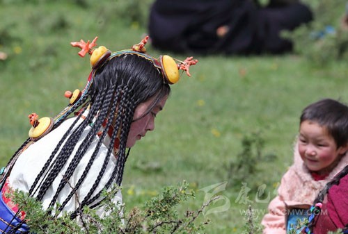 其實(shí)藏族人的審美很多同漢族不一樣,參加一場活動(dòng)她們會(huì)在頭發(fā)上占去大量的時(shí)間,編成非常多的辮子。
