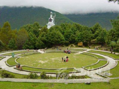 跑馬山本以賽馬而有名。20世紀(jì)初,賽馬年年舉行,時(shí)間是在每年農(nóng)歷五月十三日,各路賽馬人均于此日匯集跑馬坪參賽。此坪藏名“登托拉”,意為如馬墊子般平整的山坪。20世紀(jì)80年代初重修跑馬山坪,導(dǎo)走浸水,平整山坪,成為高山“林卡”,也為游人在節(jié)日觀賞民族歌舞、戲劇,舉辦賽馬活動(dòng),提供了理想的場(chǎng)地。山坪四周林木迭翠,春秋色調(diào)各異,別具另番景致。