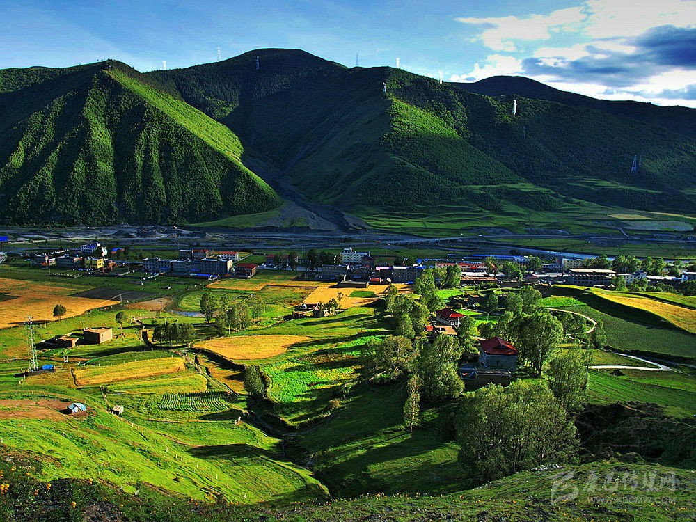 川藏線南北分叉路口,是一片如詩(shī)如畫(huà)的世外桃源。神奇的光線,無(wú)垠的草原,彎彎的小溪,金黃的柏楊,山巒連綿起伏,藏寨散落其間,牛羊安詳?shù)爻圆荨ㄎ鞯钠皆L(fēng)光美麗地綻放。這,就是新都橋,令人神往的“光與影的世界”、“攝影家的天堂”。