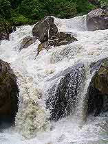 溝外交通與燕子溝大致相同,從南門關(guān)溝至兩河口14.5千米,在這里分做兩條路,一條往西南去牛園子和冰川,一條往西北去蟲草棚子(二號營地)和冰川。這里沒有食宿,道路艱險,馬不能通行,需要當(dāng)?shù)叵驅(qū)А?/p>
